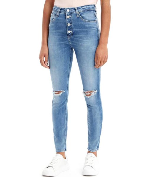 The Calvin Klein Jeans High Rise Super Skinny Ankle Jeans in denim light are an essential piece for your denim wardrobe. The branding on the waistband commands attention with every stride, while the 20% recycled cotton composition provides peace of mind for mindful wearing. The high waist and cropped ankle design elevates your style, making these jeans a versatile choice for any event.