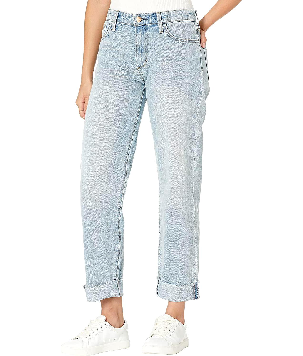 These jeans feature a mid rise that sits comfortably on the waist. The classic 5 pocket style adds a practical touch, while the cuffed boyfriend style gives these jeans a trendy, laid-back vibe. The fit type is relaxed, making these jeans comfortable and easy to move in. If you style it dressed up or down, these jeans are a versatile choice for any wardrobe.