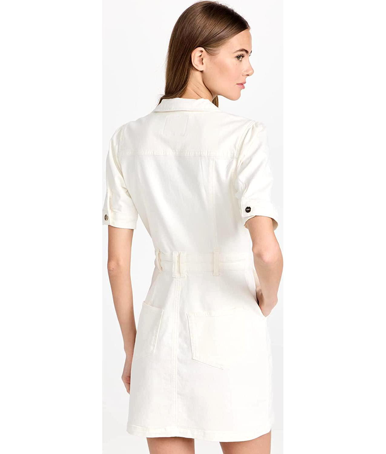 White denim is a unique and stylish choice, and this Blank Canvas Dress in White is the perfect example. Made of mid-weight, low-stretch denim, it has a Johnny collar and short sleeves with button cuffs, as well as a button placket. The slant front, patch back, and flap breast pockets with button closures add a touch of detail. The dress is unlined and has a length of 32.75 inches from the shoulder, making it a versatile and fashionable choice for any occasion. Stand out from the crowd in this amazing white denim dress.