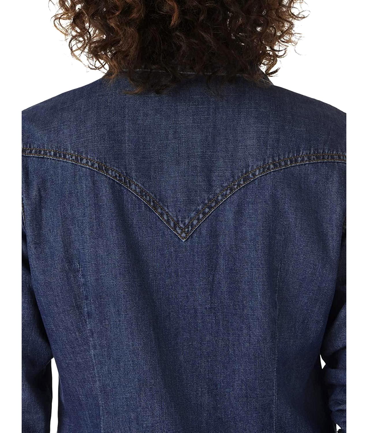 Retro Long Sleeve Western Snap Shirt in Dark Denim